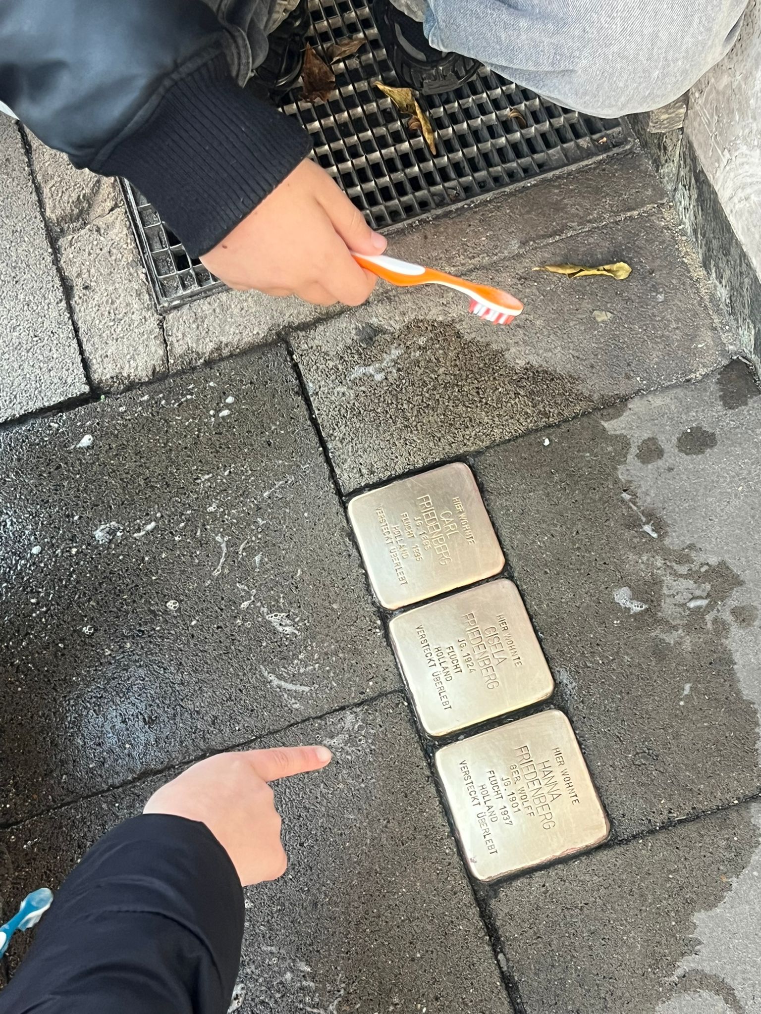 „Es war schön, heute etwas Gutes zu tun.“, kommentierte eine Schülerin aus Klasse 6 die Reinigung der Stolpersteine.