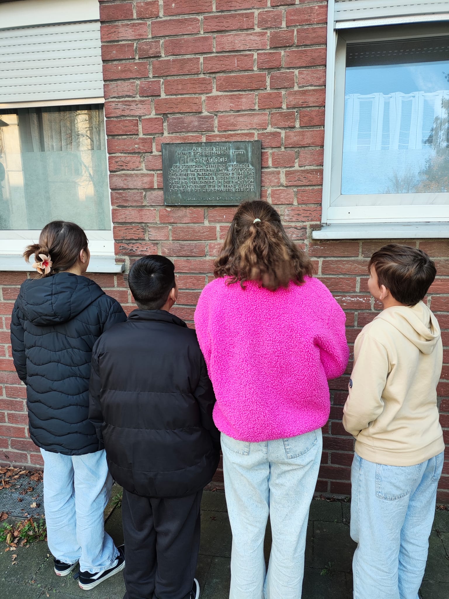 Am heutigen Freitag machten sich 8 Schülerinnen und Schüler der Klasse 6 auf den Weg in die Weseler Innenstadt, um dort die Stolpersteine von Paulina Günther, Auguste Braun, Erich Schay-Hesse, Julia Nathan, Hannelore Marchand, Carl Friedenberg und Ernst Kohlmann zu reinigen. Diese Stolpersteine sind eine Erinnerung an die Verfolgung und Ermordung der jüdischen Bevölkerung durch die Nationalsozialisten. Während des Reinigens der Stolpersteine informierten sich die engagierten Jungen und Mädchen mit der WDR-Stolpersteine-App über die Lebensgeschichte der entsprechenden Personen.