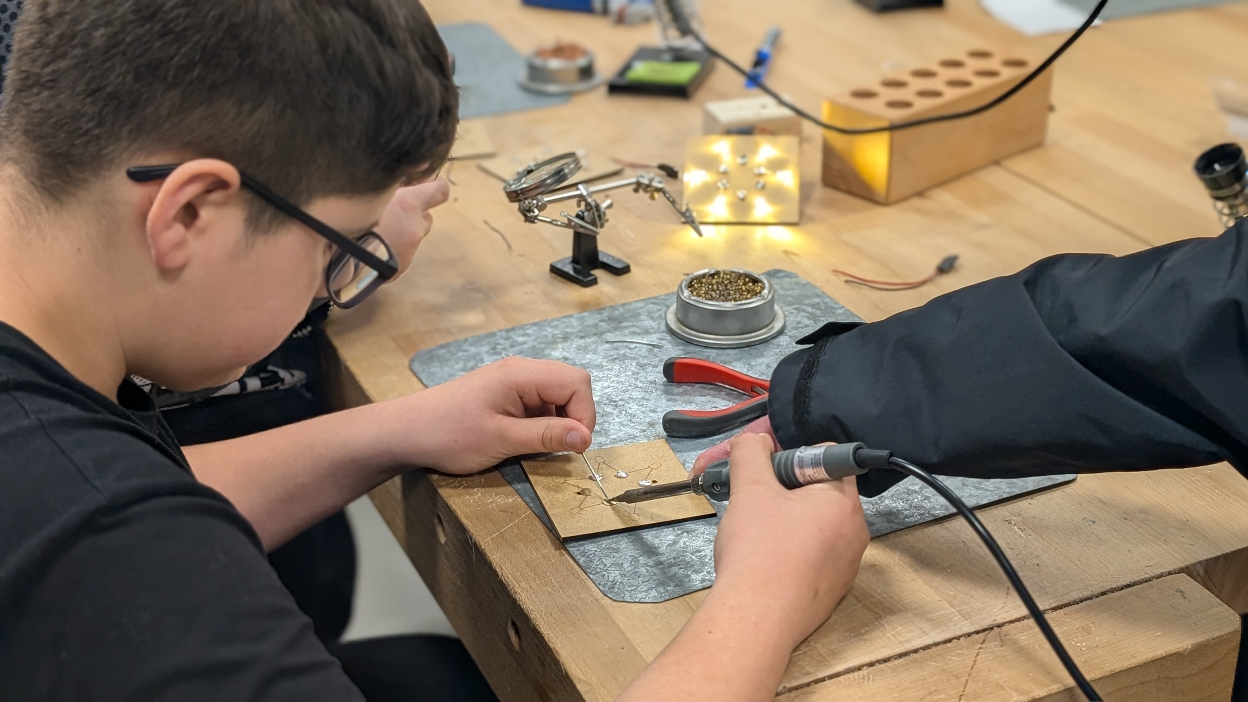 Mit ihrer innovativen Idee, alte Solarplatten vom Schuldach wiederzuverwenden und daraus neue, nachhaltige Lösungen für den Klimaschutz zu entwickeln, überzeugten die Schülerinnen und Schüler die Jury.
