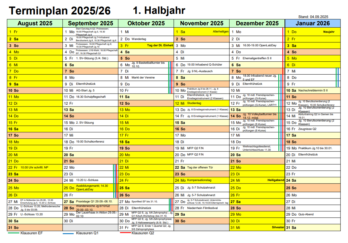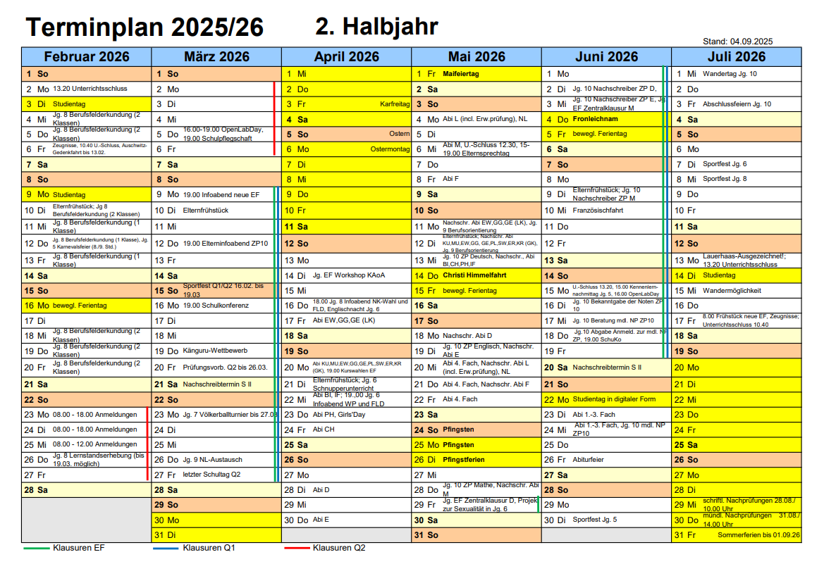 WICHTIG: Seit dem Schuljahr 2024/25 führen wir den Kalender digital als Outlook Kalender. Die unten aufgeführte PDF Version oder Bildversion enthält unter Umständen nicht die neuesten Änderungen.