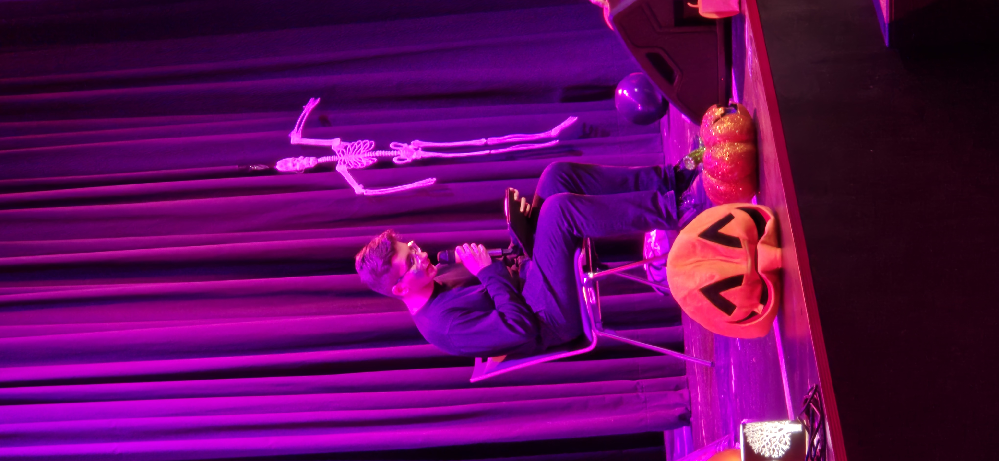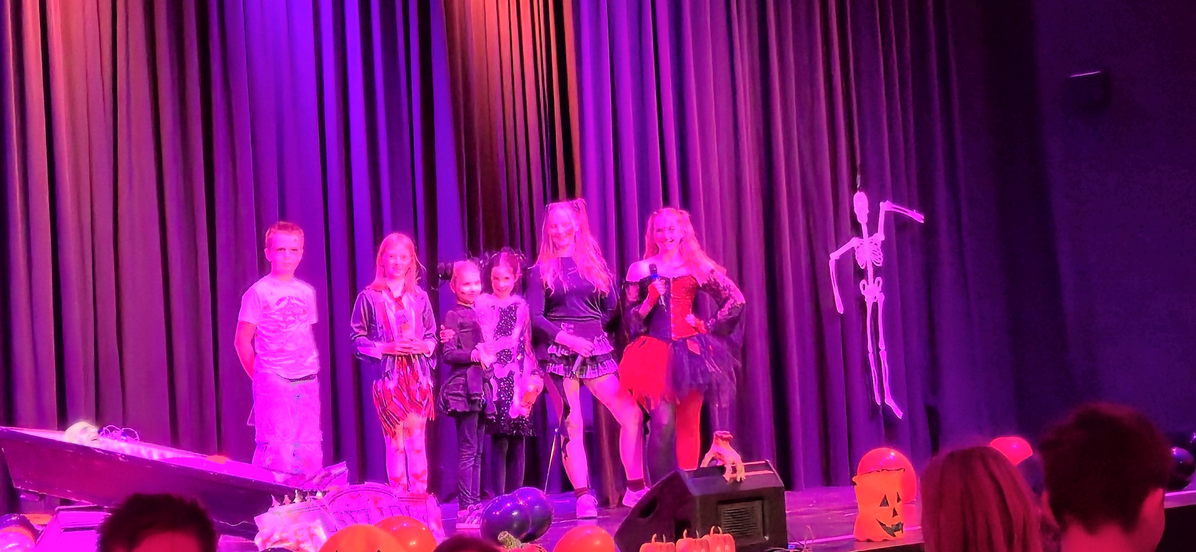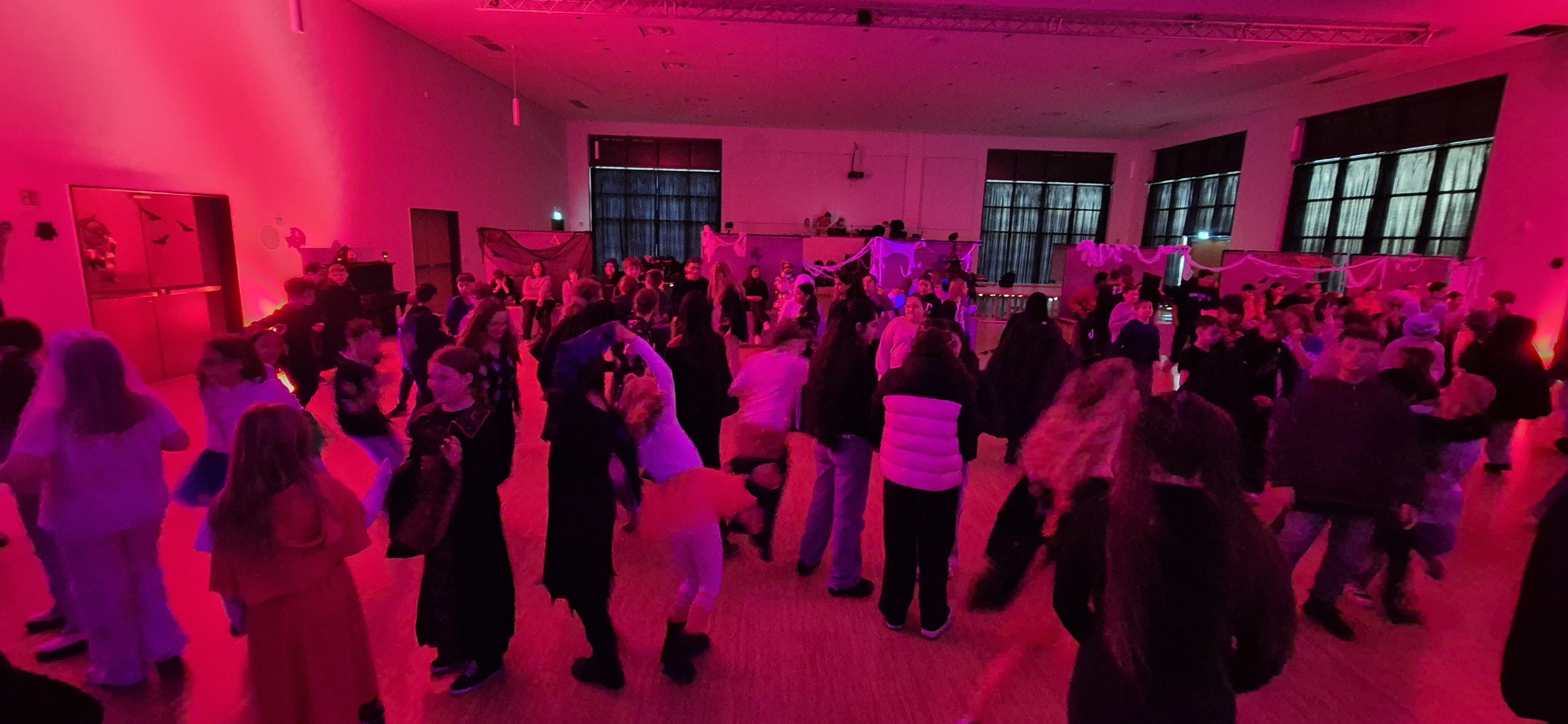 In der 8. Und 9. Stunde verwandelte sich die Aula in einen Ort voller Kürbisse, Spinnennetze und gruseliger Dekorationen. Viele Schülerinnen und Schüler kamen in fantasievollen Kostümen und trugen so zu einer fröhlich-gruseligen Atmosphäre bei. Auch einige Lehrkräfte ließen es sich nicht nehmen, verkleidet mitzufeiern.