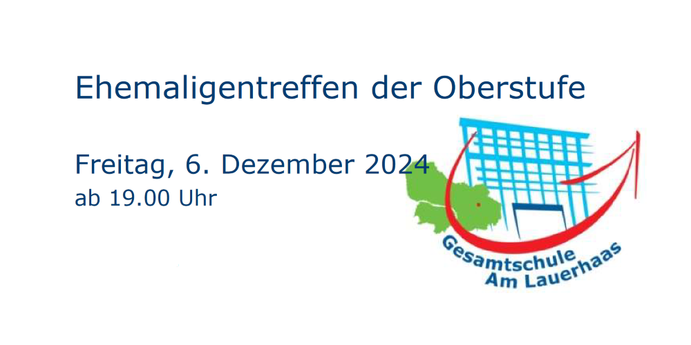 Ehemaligentreffen der Oberstufe am 5. Dezember 2025 ab 19:00 Uhr. Es gibt so viel zu erzählen, alle Ehemaligen der Oberstufe der Gesamtschule am Lauerhaas sind herzlich eingeladen dabei zu sein.