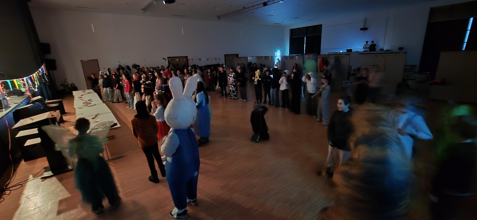 Bei Musik, Tanz und kleinen Wettkampfspielen herrschte ausgelassene Stimmung. Zum Abschluss der Feier wurde es noch einmal besonders fröhlich, denn es wurde Kamelle verteilt. Ein weiterer Höhepunkt war die Kür der drei schönsten Kostüme, die auf der Bühne der Aula unter großem Applaus stattfand.